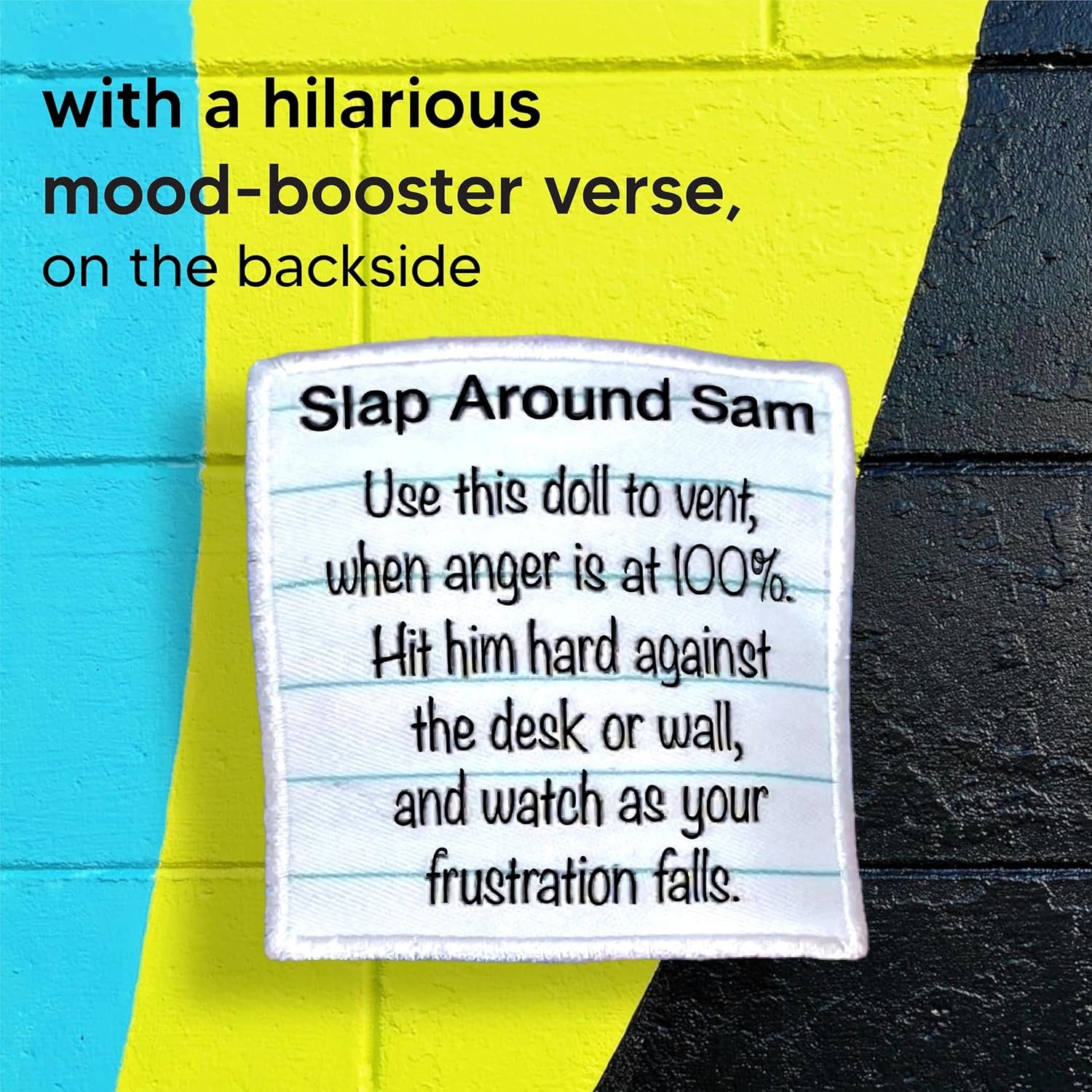 A simple yet effective instruction: When your emotions are running high, grab Slap Around Sam and give him a firm strike against a desk or wall. You’ll be amazed as your frustration starts to dissipate and your stress begins to melt away.