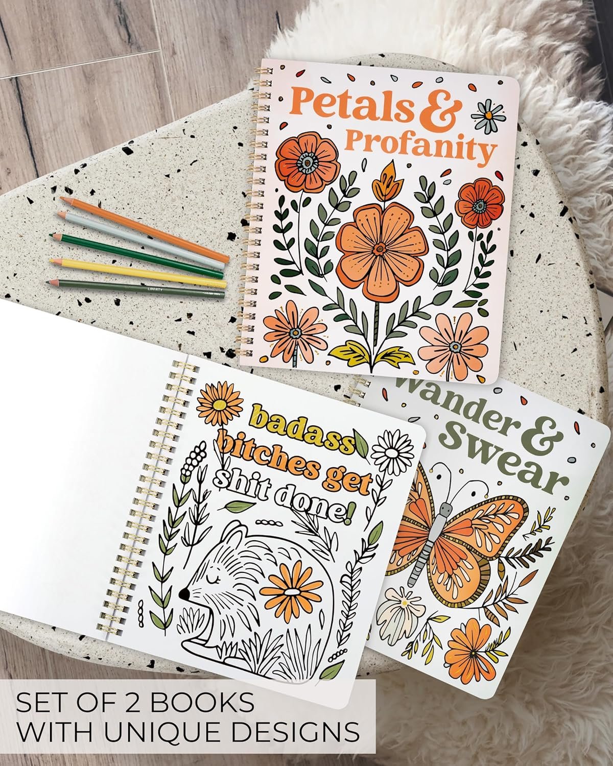Color and Chill: Coloring books for adult relaxation! Get creative with the coloring book set of 2. Stunning retro folk art pairs with hilariously phrases – great to de-stress and laugh