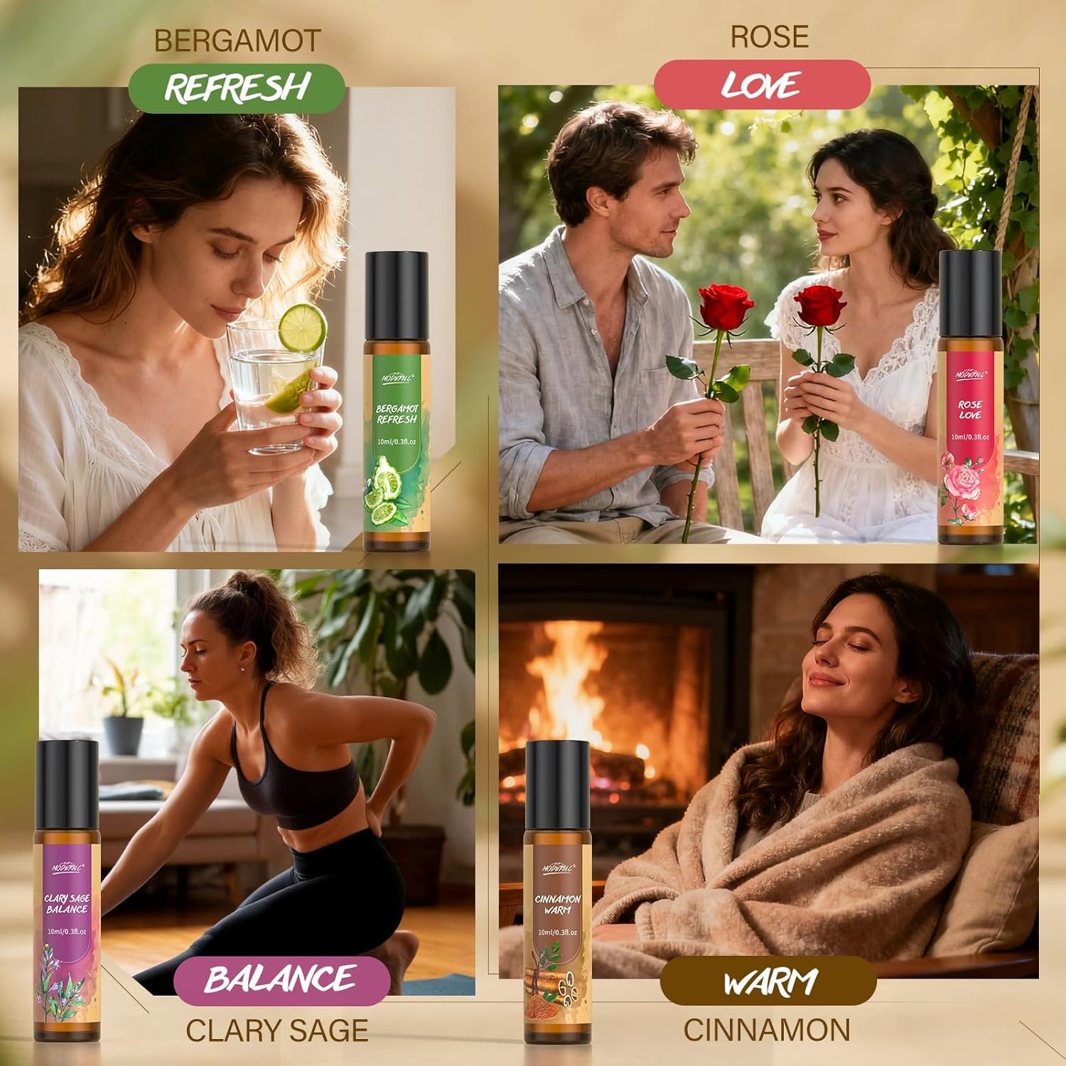 Easy and fast: This portable ressential oils roll on adopts a precise roll-on design, which is smooth and does not leak, and can quickly release a pleasant fragrance by gently rolling it on the wrist, temples, behind the ears and other parts, making it a portable solution for busy urbanites to quickly adjust their emotions and relieve stress.
