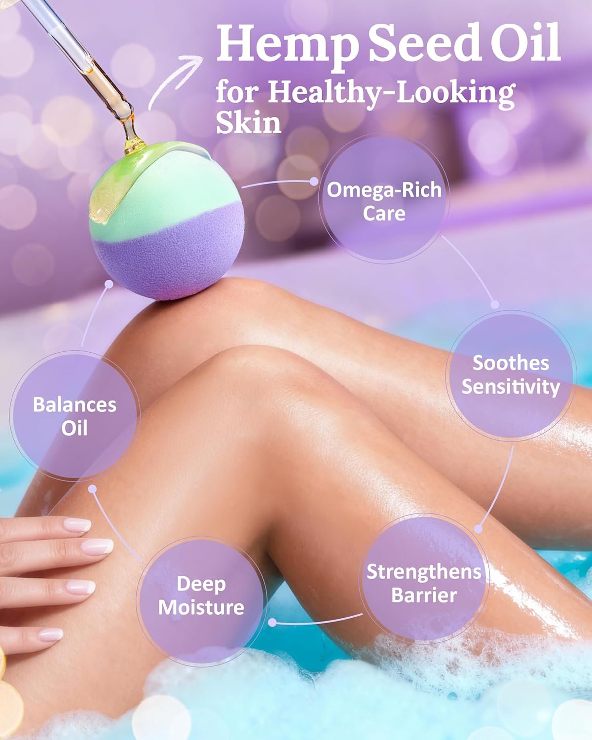 Clean Ingredients for Everyday Use – Made with baking soda, citric acid, glycerin, natural essential oils, and botanical hemp seed oil. This gentle formula contains no artificial fragrances, dyes, parabens, or harsh additives, making it suitable for frequent use on a variety of skin types. Crafted with simple, skin-friendly ingredients, it offers peace of mind for daily bathing without heavy or irritating chemicals