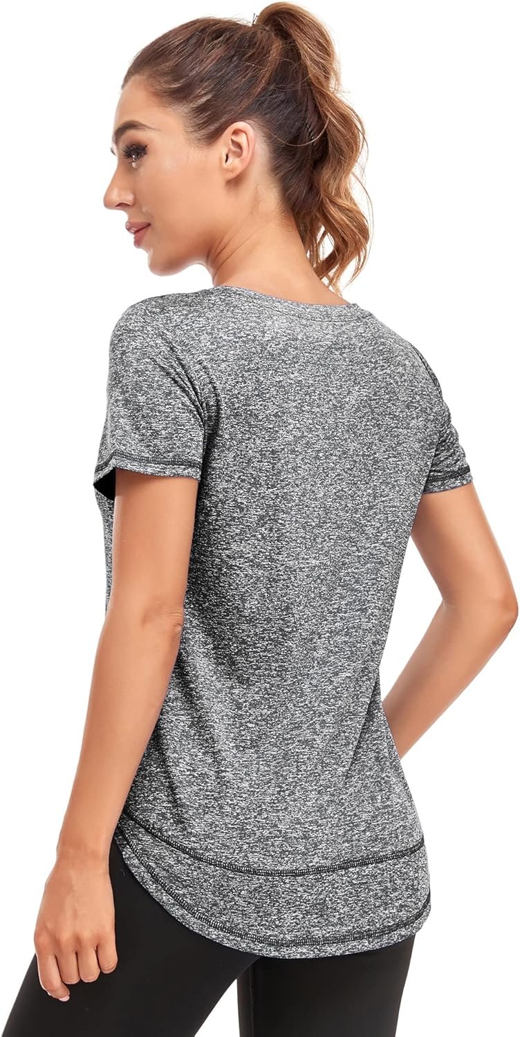 Abrooical Women’s Short Sleeve Workout Shirts Crewneck Sports Yoga Running Dry Fit Tops Side Split Tee Activewear