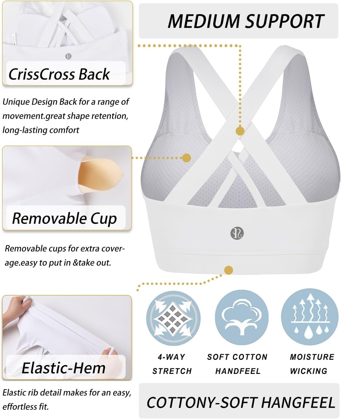 Designed for a compression fit, Maximum Support sports bras are constructed with thicker straps and wider hems. They are created for stability & comfort. Perfect for medium/ high-impact workouts such as tennis、HIIT training、yoga、running and cardio,fit snugly to the body for additional lift and support. They will hold you in without holding you back.They are our most supportive bras!